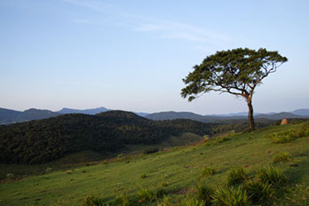 Horton Plains National Park is a protected area in the central highlands of Sri Lanka and is covered by montane grassland and cloud forest. This plateau at an altitude of 2,100–2,300 metres (6,900–7,500 ft) is rich in biodiversity and many species found here are endemic to the region. This region was designated a national park in 1988. It is also a popular tourist destination and is situated 8 kilometres (5.0 mi) from Ohiya, 6 kilometres (3.7 mi) from the world famous Ohiya Gap/Dondra Watch and 32 kilometres (20 mi) from Nuwara Eliya.
